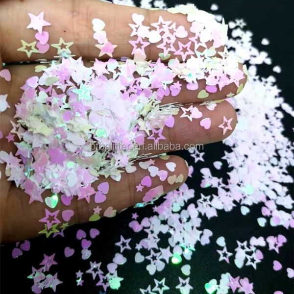 Customized Color Bulk Pink Heart Open Star Shapes 2oz or 1kg Bag Packing Polyester Chunky Shaped Mixes Glitter Nails Easter Occasion Images |